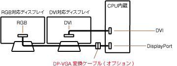 富士通純正ディスプレイでマルチディスプレイ表示を行う場合は、別売オプションの変換ケーブルが必要になります。