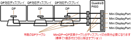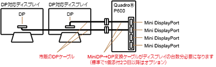 富士通純正ディスプレイでマルチディスプレイ表示を行う場合は、別売オプションの変換ケーブルまたは市販のDPケーブルが必要になります。