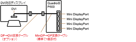 WD2/C1で「NVIDIA® Quadro® P600」グラフィックスを選択時、ディスプレイとの接続には別売オプションのDP→DVI変換ケーブルまたは市販のDPケーブルが別途必要になります。