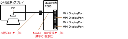 「NVIDIA® Quadro® P600」グラフィックス選択時、ディスプレイとの接続には別売オプションのDP→DVI変換ケーブルまたは市販のDPケーブルが別途必要になります。