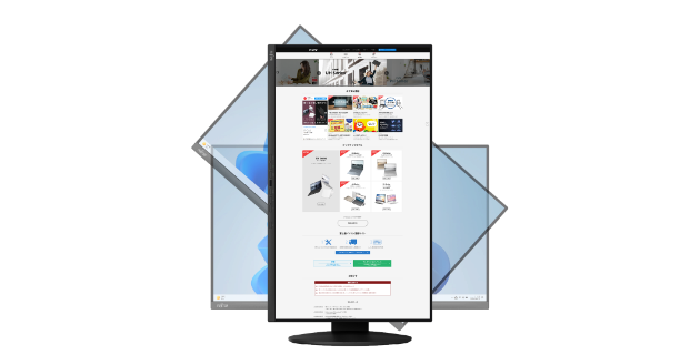 画面を90度回転させて縦型表示させることも可能です。文書作成やWebサイト閲覧など、使い方に合わせた快適な表示ができます。