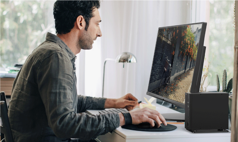 第14世代インテル® Core™プロセッサーをはじめ、より高速な動作を実現するNVMe接続SSD、最大32GBのDDR5メモリ搭載により動画編集や写真編集などの高負荷な作業にも余裕で対応できる上、光学ドライブも内蔵できます。