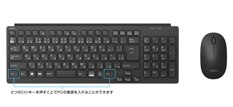 AltキーとPキーを同時に押下することでPC本体の電源をONにできます。お部屋の中でPC本体から少々離れての操作や、PC本体を操作しにくい場所へ設置してもスムーズにお使いいただくことができます。