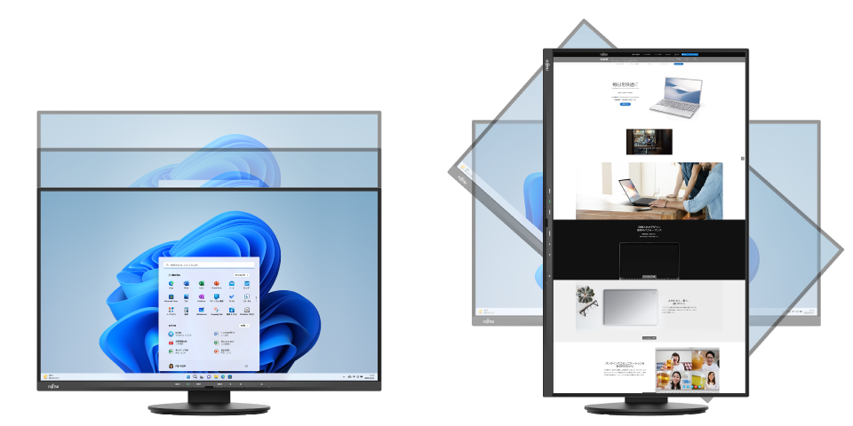 画面を90度回転させて縦型表示させることも可能です。文書作成やWebサイト閲覧など、使い方に合わせた快適な表示ができます。