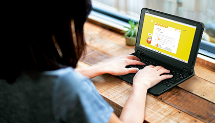 場所を選ばず、好きなところで学べるサイズと軽さ。 動画視聴にも安心のスペックに、打ちやすいキーボードはお子さまの課題作成を快適に。
