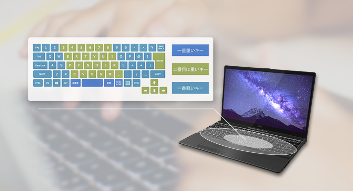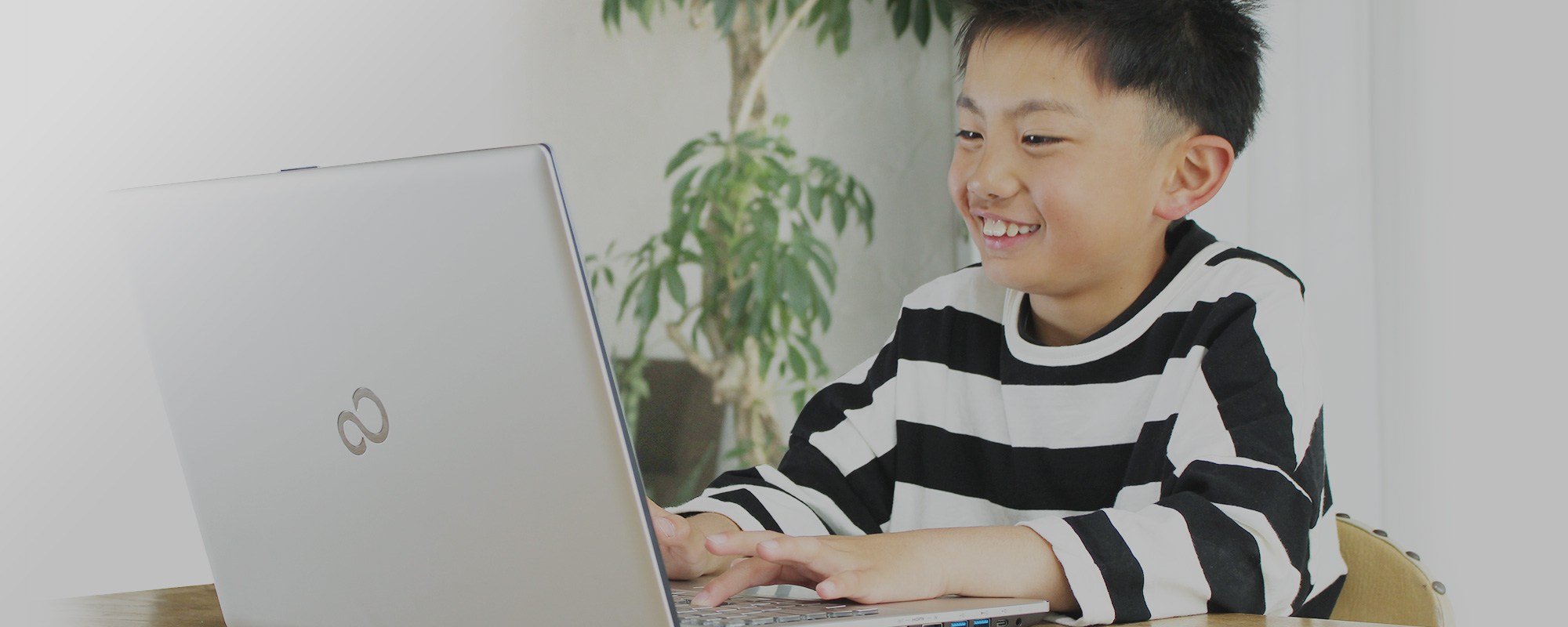 タイピングはパソコンを使うための必要なスキルです。パソコンを使いこなすためには、お子さまにストレスを感じさせないキーボードが重要です。FMVはキーの細かな配置や、どの指でも楽に打てる多段階押下圧などキーボードにこだわっています。