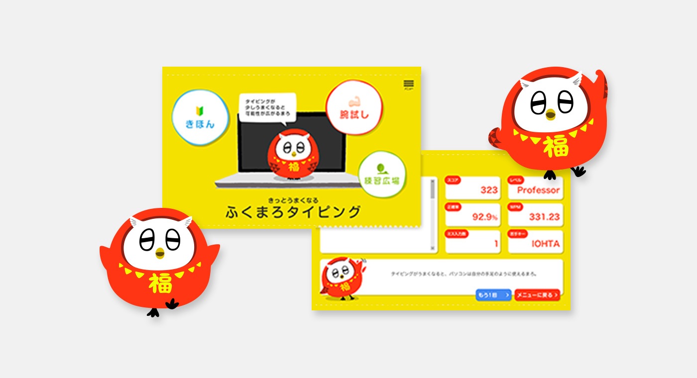 お子さまが自発的にパソコンを楽しむように、FMVに搭載されているAI「いつもアシストふくまろ」なら一緒にタイピングや英語が学べたり、映像や音楽を声で再生するなど日常もサポートしてくれます。
