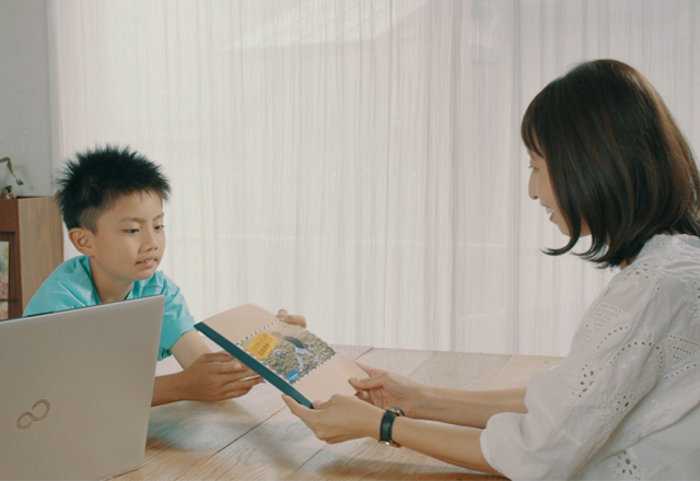 パソコンを使って、自由研究レポートを発表してみましょう。画面を見せながら説明することで、分かりやすい発表をすることができます。発表後には、お母さん、お父さんへ感想を伝えてあげましょう。