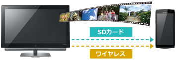 注7 : 動作確認済みの機器については、「ケータイ書き出し」機能についてをご確認ください。 また、SDXCには対応しておりません。 SDまたはSDHCカードをご使用ください。 注8 : 本機能をご使用いただくには、DigitalTVboxのアップデートが必要です。 対応機器については、「持ち出し視聴」機能についてをご確認ください。 * 写真のスマートフォンは「F-02E」です。