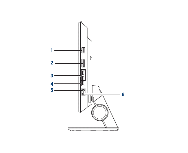)、電源ランプ12. 明るさセンサー 13. リモコン受光部[注] 14. 内蔵無線LAN・内蔵Bluetoothワイヤレステクノロジー兼用アンテナ 15. キーボード/マウスアンテナ 16. スピーカー 17. スイーベル 18. 視線アシスト用カメラ 19. 視線アシスト用LED 注 : テレビチューナー搭載機種のみ。 3.パソコン本体右側面
