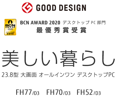 美しい映像が視覚にダイレクトに飛び込んでくる体験。23.8型の大画面をもっと気軽に楽しんでいただくために、液晶周囲の4辺狭額化を実現しました。置いた空間まで洗練されていくような軽快感溢れるデスクトップPC です。