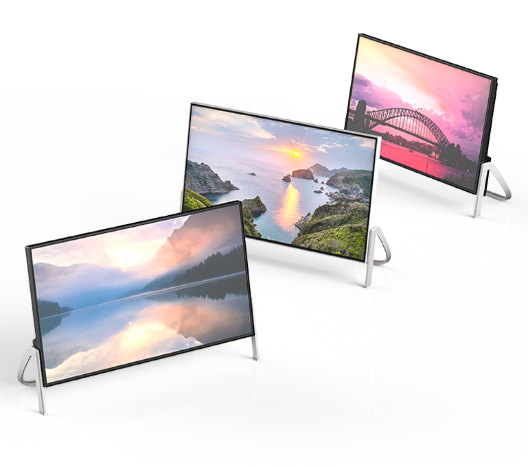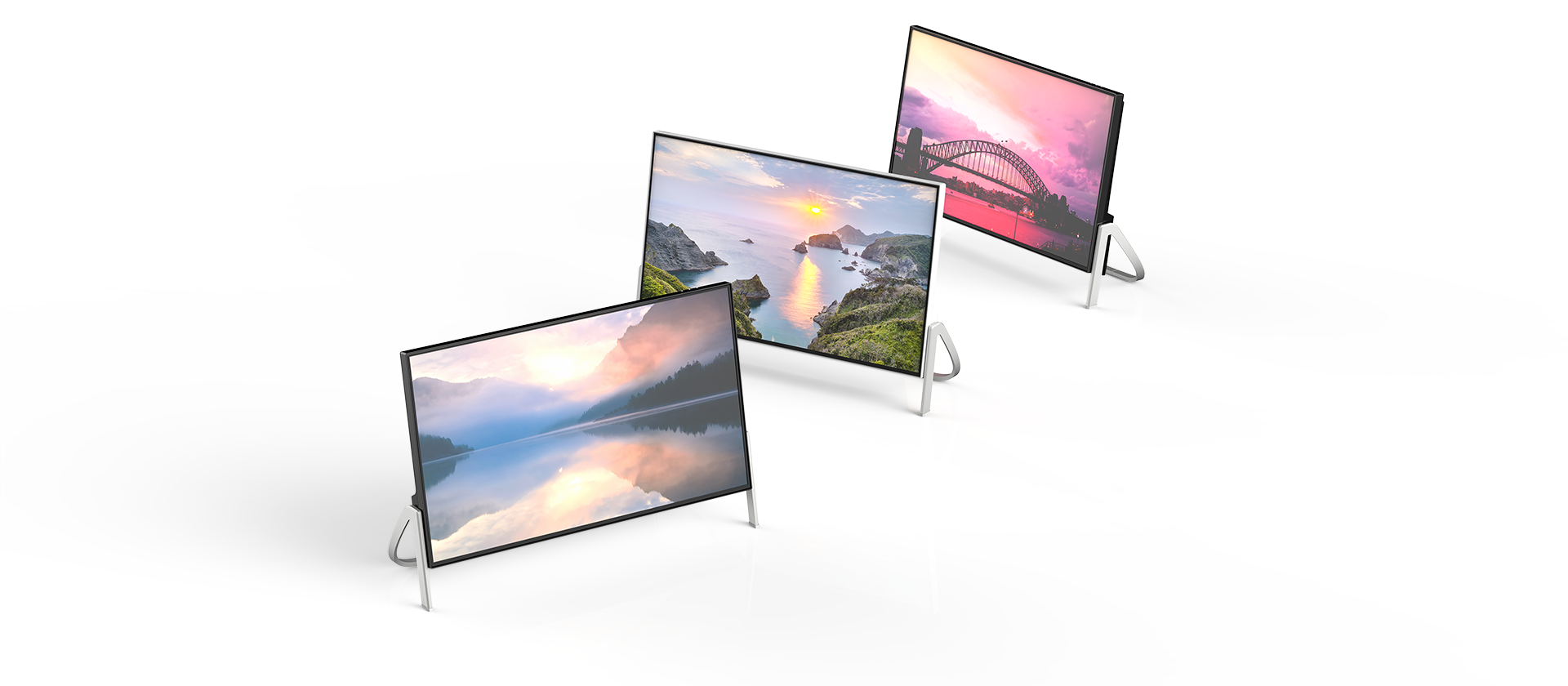 空間の中に美しい映像がスッと浮き立ったような佇まい。人とパソコンと空間の関係を再考し、空間と調和しながら、生活の中に自然に溶け込む姿を追求しました。