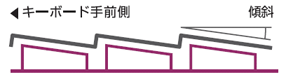 デザイン性に優れたアイソレーションキーボードに加え、キーを列ごとに傾斜させ、階段形状の段差を持たせているので、キー列を間違えず正確なタッチタイピングができます。