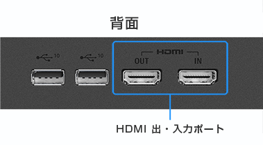 家庭用ゲーム機やレコーダーなどを接続し、パソコンを起動せずに27型の液晶ディスプレイとして使用できるHDMI入力端子を搭載。前面に入出力切り替えボタンもあるのでかんたんに操作できます。