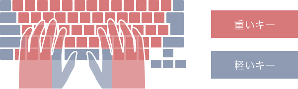 キーストロークは約1.5mm、指の力に合わせてキーの重さを2段階に調整。また、キーが指にフィットして打ちやすい「球面シリンドリカルキートップ」を搭載し、快適な文字入力を実現しました。