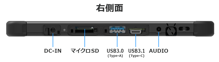 コネクタ形状がリバーシブルとなって、上下の向きを気にせずに接続することができるUSB Type-Cポートを搭載。ポートリプリケーターなど、USB Type-C対応のさまざまな機器との接続や、オプションの変換アダプタを使用してHDMI入力のついたディスプレイなどへ映像を出力することができます。