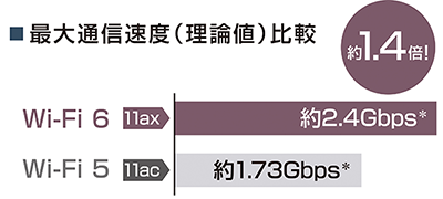 * 最大通信速度は規格上の理論値であり、実際の通信速度を示すものではありません。実際の通信速度は使用環境などにより変わります。