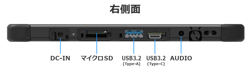 コネクタ形状がリバーシブルとなって、上下の向きを気にせずに接続することができるUSB Type-Cポートを搭載。ポートリプリケーターなど、USB Type-C対応のさまざまな機器との接続や、オプションの変換アダプタを使用してHDMI入力のついたディスプレイなどへ映像を出力することができます。