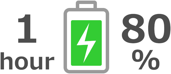 標準添付のACアダプター使用時に約1時間の充電でバッテリ容量の約80%まで充電できる急速充電機能を搭載。