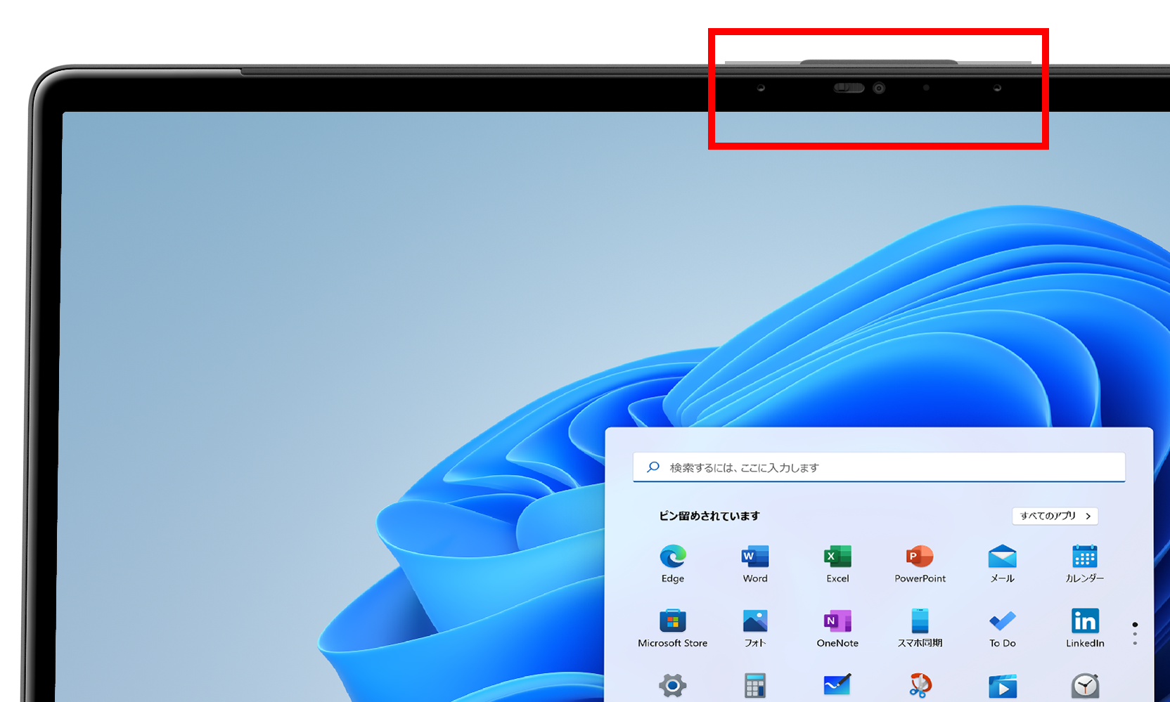 忘れがちなパスワードの入力よりもかんたんで、セキュリティ面でも安心な生体認証機能「Windows Hello」に対応したWebカメラを搭載(注2)。