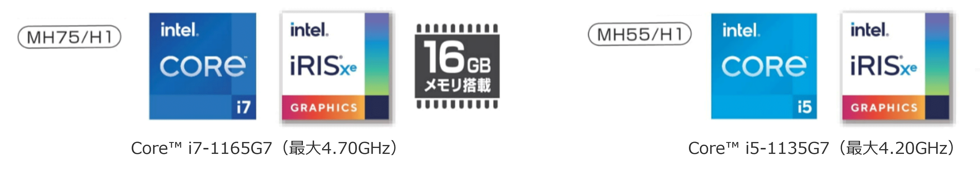 4コア/8スレッドの第11世代インテル® Core™ プロセッサーを搭載。グラフィック性能も更に向上し、写真、動画編集などの負荷の高い作業も快適に処理します。