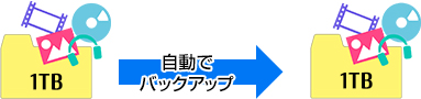 さらに、2つのHDDを利用して毎週自動でバックアップを行います。だから、安心して写真、動画、音楽などの大切なデータを保存しておくことができます。