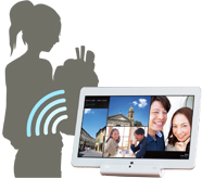 取り込んだ写真の撮影日や位置情報を元に、My Cloudによってイベントごとの「おまかせアルバム」が自動的に作成され、Board Styleなら本体に近づくだけでスライドショーがスタートします。さらに、自分で選択した写真、音楽、動画を使ってオリジナルアルバムを作成できます。作成されたアルバムは大画面ワイヤレスディスプレイで実際にページをめくるような感覚で操作して楽しめます。