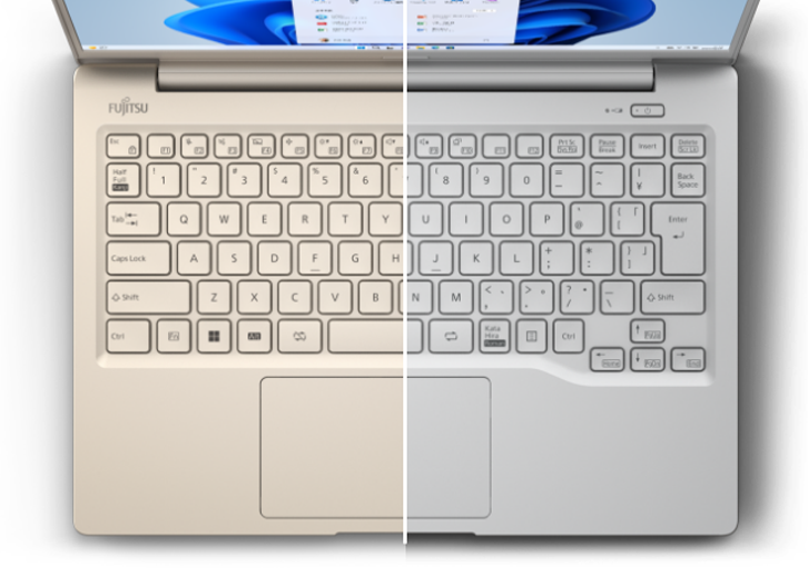 ステップ型のキートップ、球面シリンドリカルキートップなど、FMV共通のこだわりで快適な文字入力をサポートします。