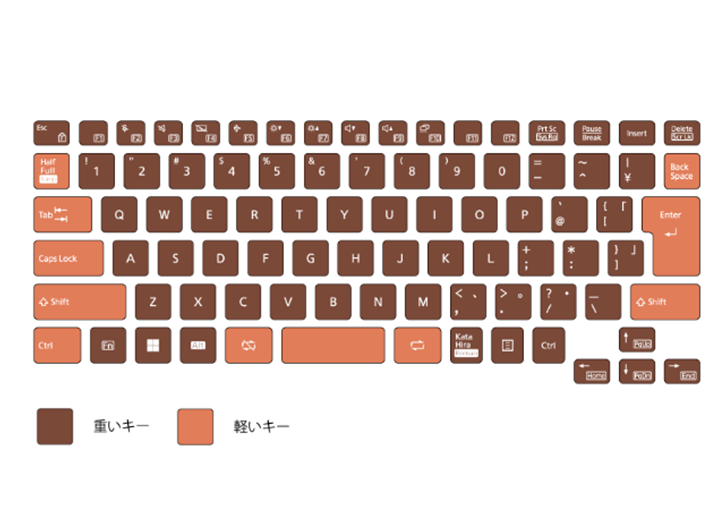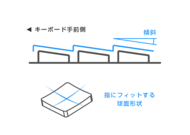 キーボードは約1.7mmのキーストロークで、各指の力に応じてエリアごとにキーの重さを2段階に設定。