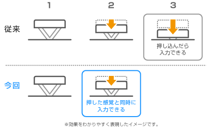 AI活用に便利な「Copilot キー」を搭載したキーボードは約1.7mmのキーストロークで、各指の力に応じてエリアごとにキーの反応荷重を2段階に設定。