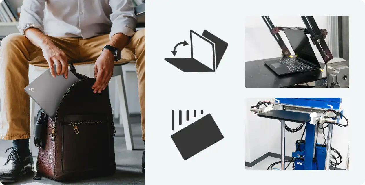 日常で起こりうる様々なケースを想定し、設計段階での厳しい品質試験を実施しています。FMV独自の試験に加え、アメリカ国防総省が制定したMIL規格(MIL-STD-810H)に準拠したテストもクリアしているのでさらに安心※5。