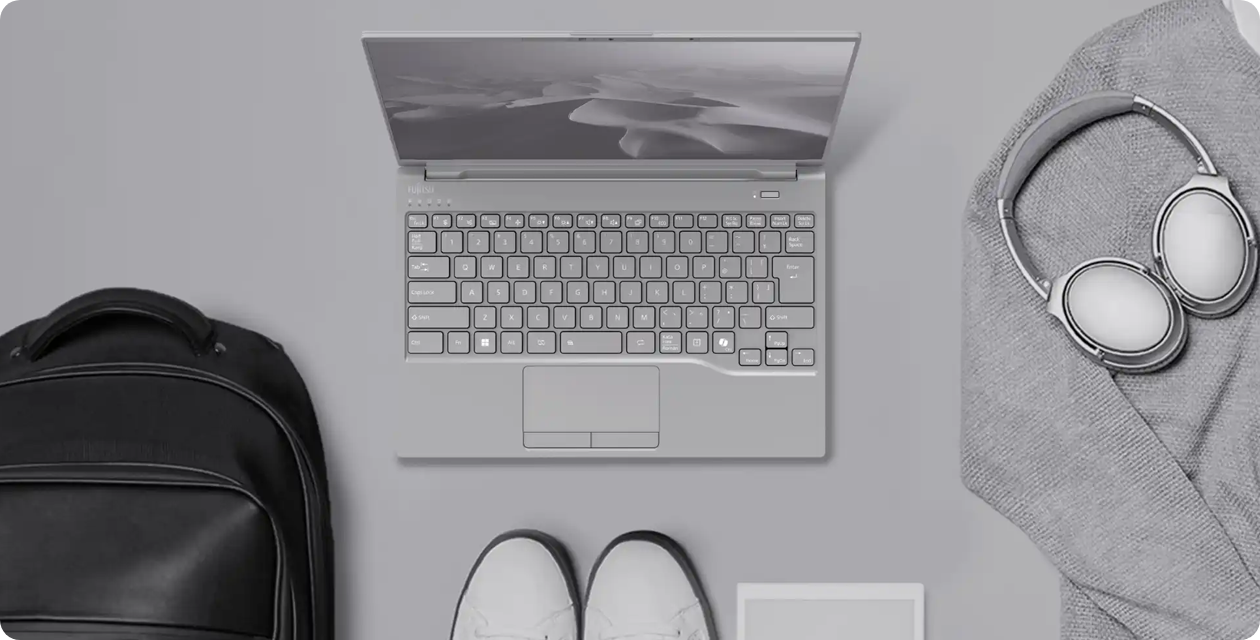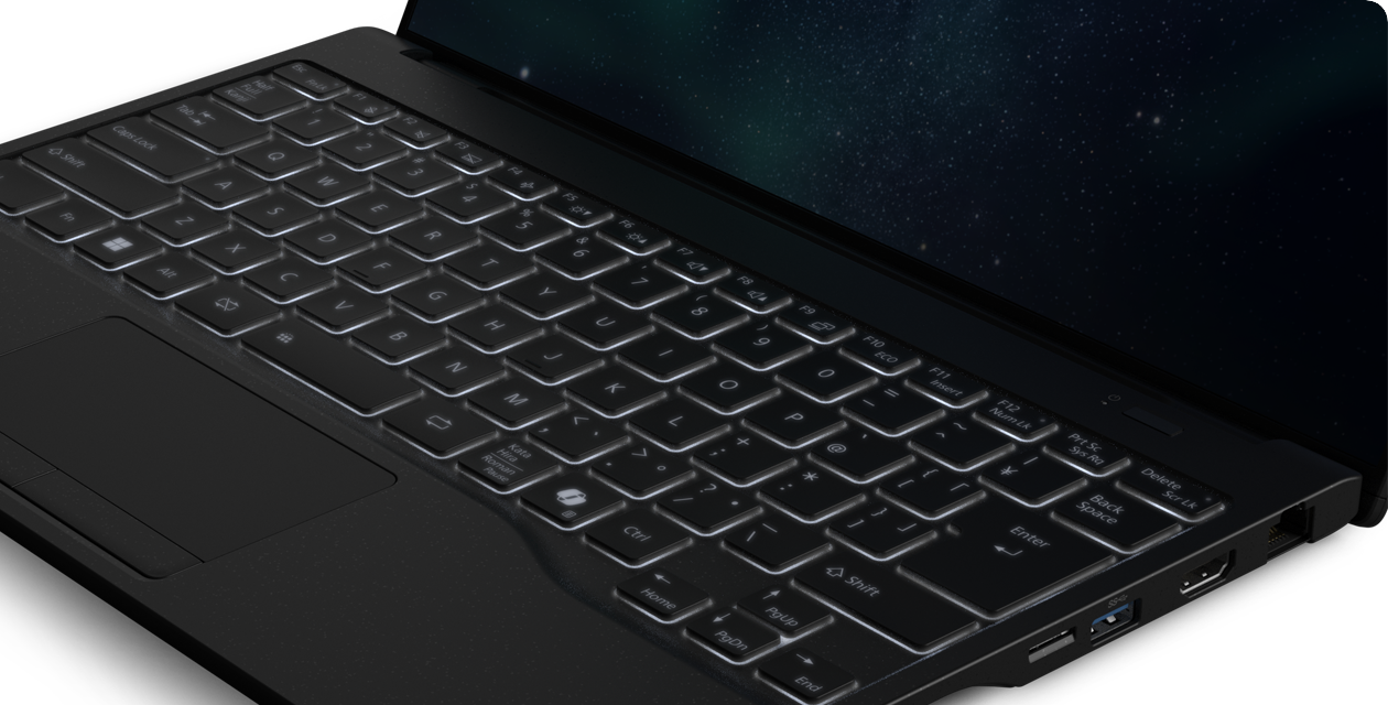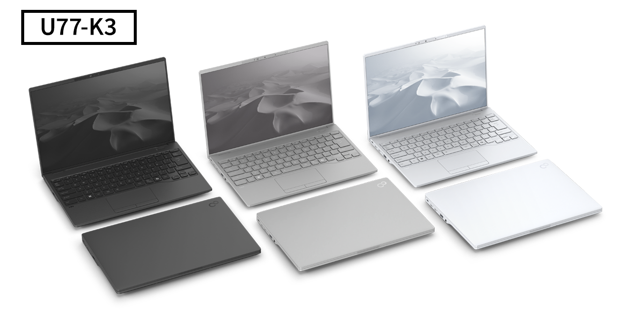カーボンやマグネシウムリチウム合金などの素材や、SSD、バッテリー、細かな部品など細部にまで及ぶ検討を重ねた世界最軽量※1のUX-K3は約634gと圧倒的な軽さ。長時間駆動モデルのU77-K3も900gを切る軽さなので、カバンの中に入れていても忘れてしまいそうになります。