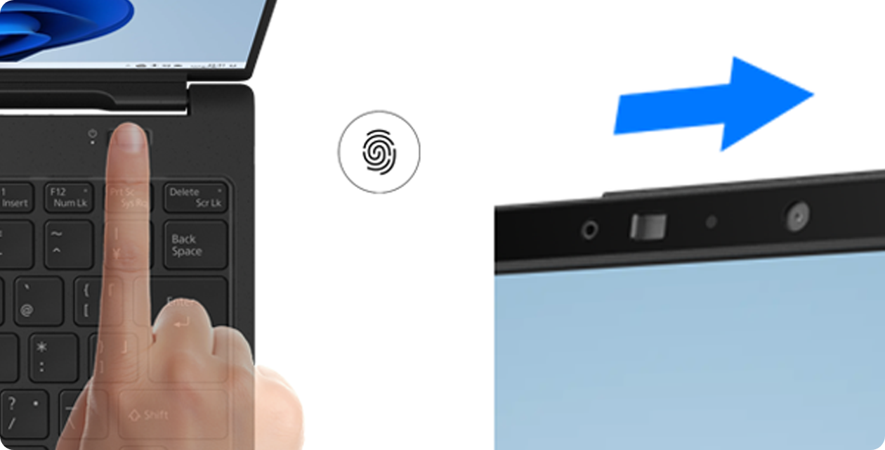 電源ボタンにはWindows Hello対応指紋センサーを搭載しているので、外出先でマスクをつけたままでもサインイン可能。