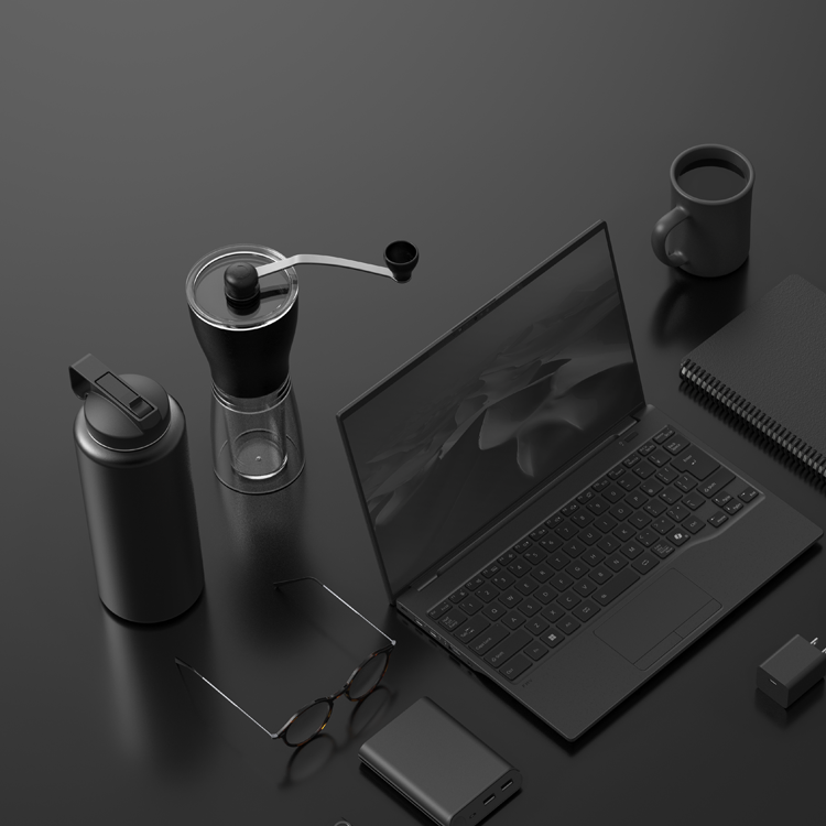 14.0型のディスプレイ周りは極限まで余白をなくした4辺狭額縁のノイズレスデザイン。コンテンツや作業に集中でき、インテリアや周囲の雰囲気ともマッチするシンプルデザインです。