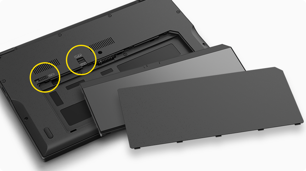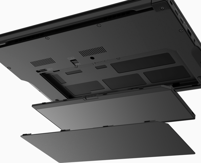 カスタムメイドモデル限定で、お客様がかんたんに内蔵バッテリーを着脱できるモデル(注1)をご用意しました。バッテリーは充放電を繰り返すと次第に消耗してご購入時の性能が得られなくなりますが、バッテリー交換のため修理に出すことなく新しいバッテリー(オプション)へ交換できます。長期間快適に使い続けたいビジネス利用や、学校などでの使用に最適です。