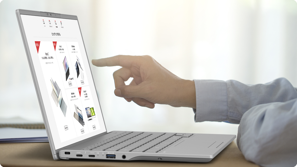 軽量・コンパクトなボディに充実のコネクタ類を搭載しています。USB Type-C(U77-K3はThunderbolt™ 4対応)コネクタを2つ搭載し、更に多くの機器とつながるようになりました。有線LANポートも搭載しているので、自宅や宿泊先で安定した通信が可能です。
