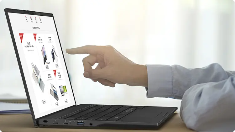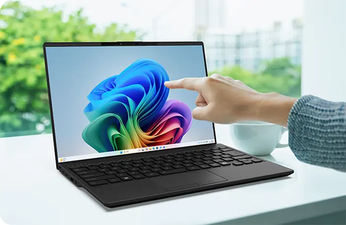 スマホのように直感的に画面操作できるタッチパネルを内蔵した、縦横比16:10の大画面14.0型ワイド液晶搭載。プライベートにもビジネスにも大活躍します。