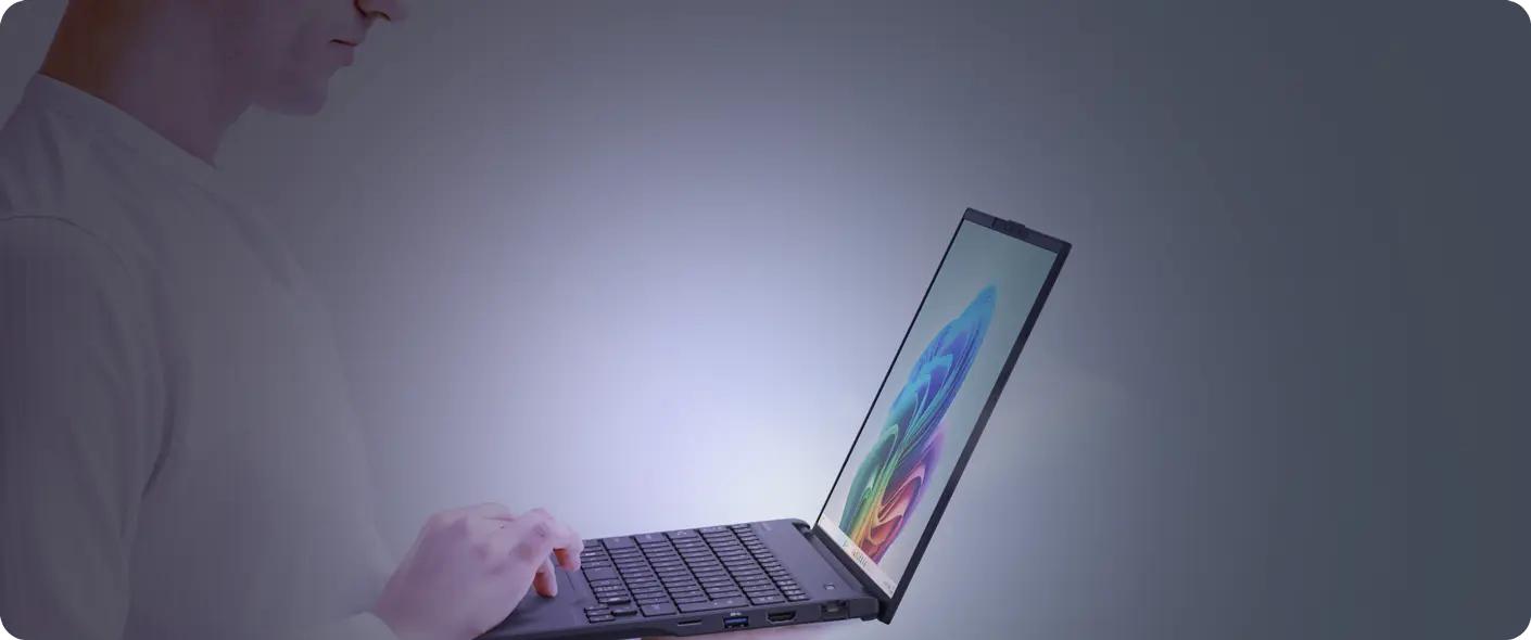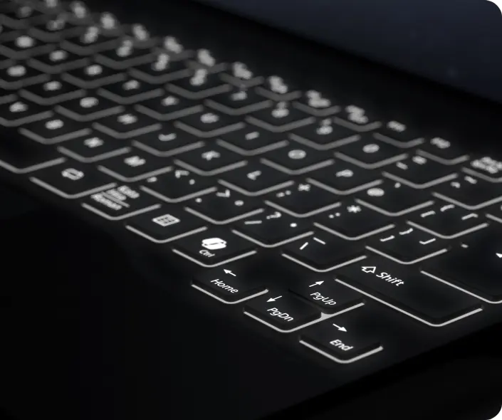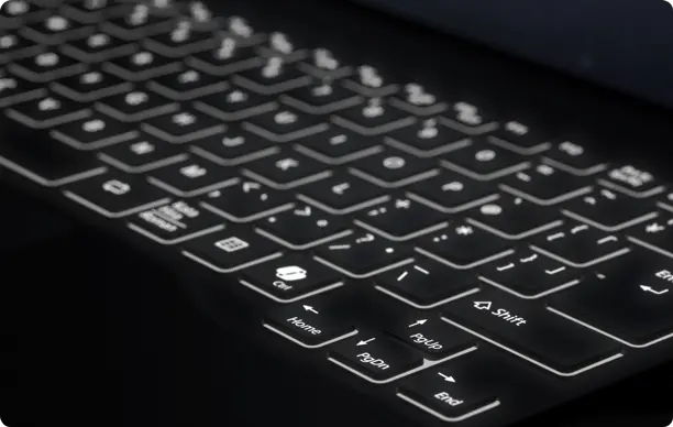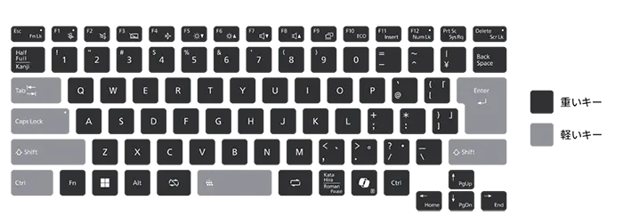 AI活用に便利な「Copilot キー」を搭載したキーピッチ約19mmのキーボードは、キーストロークを約1.5mm、キーの重さは指の力に合わせて2段階に調整。バックライトキーボード搭載なので暗い場所でも快適にキー入力が可能です。