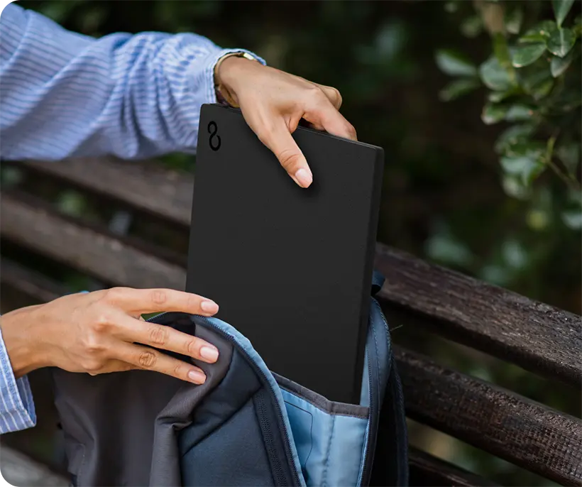 落ち着いたマットな革の風合いを再現した、質感の高いシンプルで美しいデザインとともに、持ち運びの際にパソコン本体を傷からしっかりと守ります。(注3)