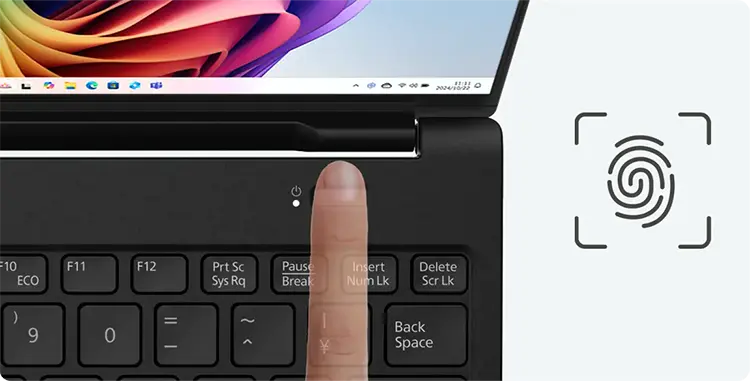 電源ボタンにはWindows Hello対応指紋センサーを搭載しているので、外出先でマスクをつけたままでもサインイン可能。