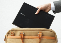 持ち歩くからこそ、上質なデザインを。知的な高級感と上品なエレガントさをコンセプトにデザインしました。横に走る一筋のラインが特徴的な液晶天板には、ビジネスシーンに合う、光沢ある美しい「グロスブラック」を採用しています。