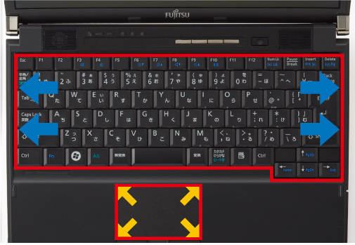 フラットポイント上を時計回りや反時計回りになぞると、指を動かしている間ウィンドウ内の画面を上下・左右にスクロールできるのでインターネット閲覧などが快適に行えます。