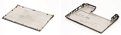 天面と底面の素材には、マグネシウム合金を採用し、高度な成型技術で薄型化を実現。強度を保ちながら軽量化を図っています。