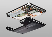 高い水準の高密度実装技術を採用することにより、基板上にインターフェース部品を実装しつつも、軽量化を実現しています。さらに、複数部品を1つに集約し部品点数を削減するなど、数g単位の軽量化の積み重ねにより、軽量ボディーを実現しています。