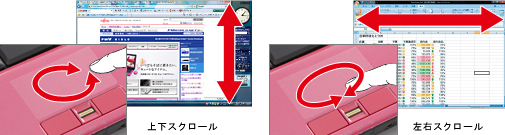 フラットポイント上を時計回りや反時計回りになぞると、指を動かしている間ウィンドウ内の上下・左右にスクロールできます。