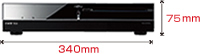 高さ75mm、幅340mmの省スペースデザイン。DVDレコーダーのようにAVラックに収納して使うことができます。(注17) また、高級感のあるシルバーとブラックを配色し、テレビとの調和も配慮したデザインです。
