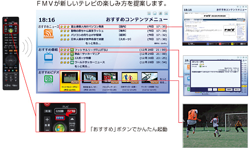 FMVがおすすめするコンテンツをまとめた便利なソフト。リモコンの「おすすめ」ボタンからも起動でき、一覧で表示されたコンテンツから選択するだけの簡単操作で楽しむことができます。