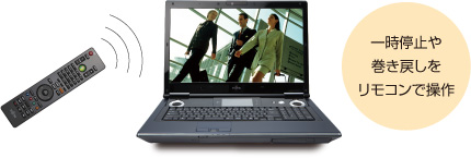 少しパソコンから離れたいときでも、一時停止や巻き戻しができるから見たいシーンを逃しません。また、予約録画した番組の放送途中に帰宅しても、番組の最初から楽しめます。さらに、録画中でも別の録画済み番組の再生もできます。
