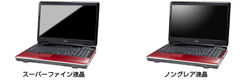 「スーパーファイン液晶」または、「ノングレア液晶」(注7)から選択できます。「ノングレア液晶」は表面に光沢処理が施されていないため、蛍光灯などの映りこみを抑えることができます。