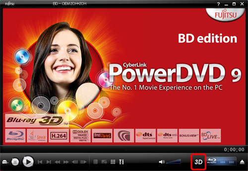 3Dサンプルコンテンツを視聴するときは、次の手順で「Fujitsu PowerDVD9 3D Player」の設定を変更してください。